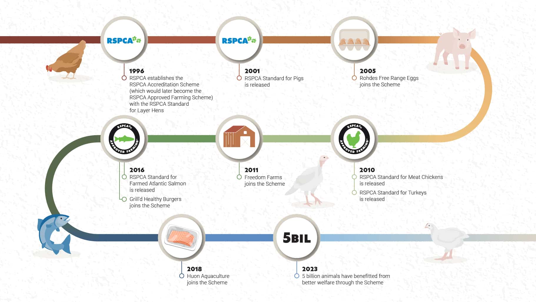 Everyone enjoys a good throwback, and for the 5 billion meat chickens, pigs, layer hens, turkeys and salmon reared to the RSPCA’s higher welfare standards who have benefitted from a better quality of life since the RSPCA Approved Farming Scheme began over 25 years ago, this is a great opportunity to look back on some of our keystone producers and brands who have helped improve animal welfare along the way. It’s all part of helping you Know the Story behind RSPCA Approved.